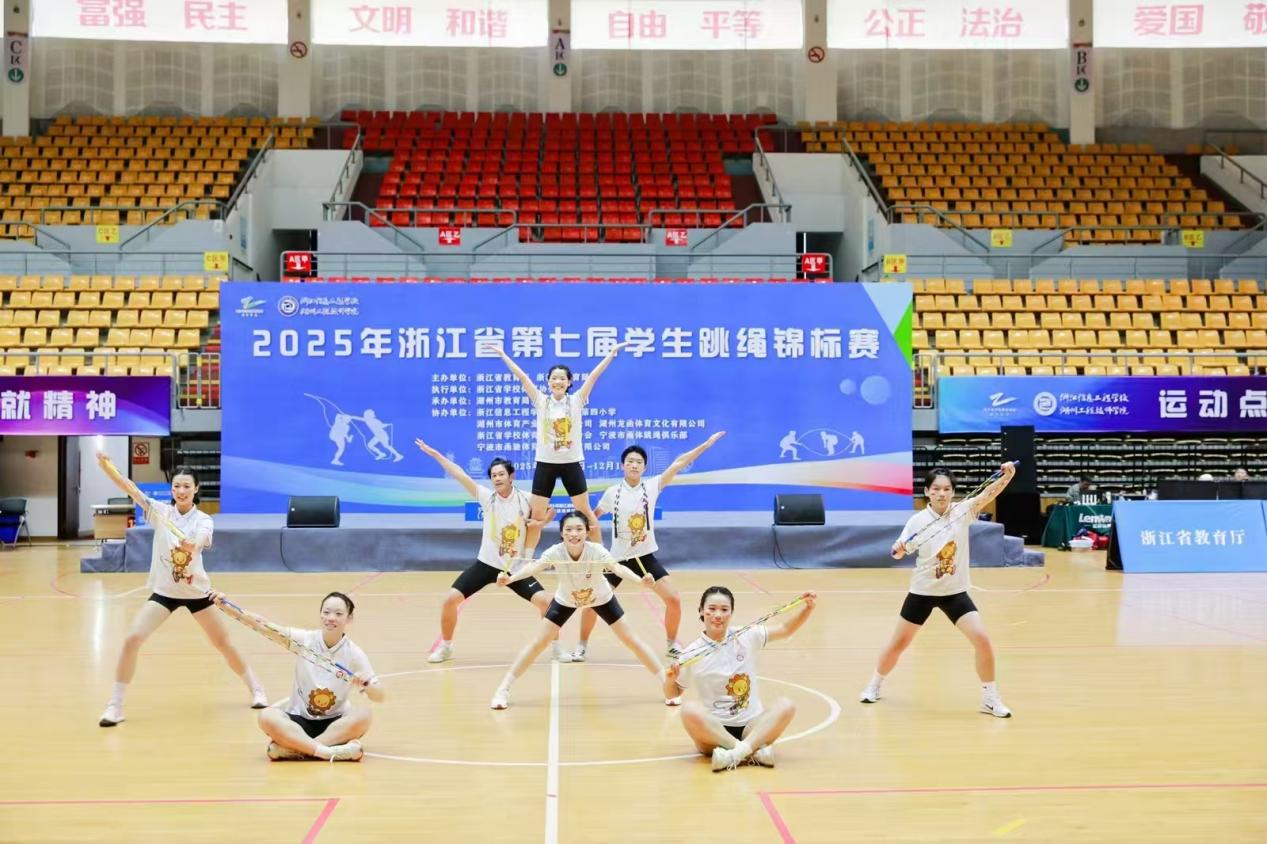 2025年浙江省第七届学生跳绳锦标赛于11月28日至30日在湖州体育馆举行,我校花样跳绳队在领队耿家先、教练郭思化的带领下,经顽强拼搏,最终荣获多项佳绩。