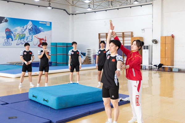 随后,各位体育冠军分赴武术馆、羽毛球馆、乒乓球馆、体操馆、篮球馆等场地,与校运动队学生开展“零距离”技术指导与互动交流,现场氛围热烈。